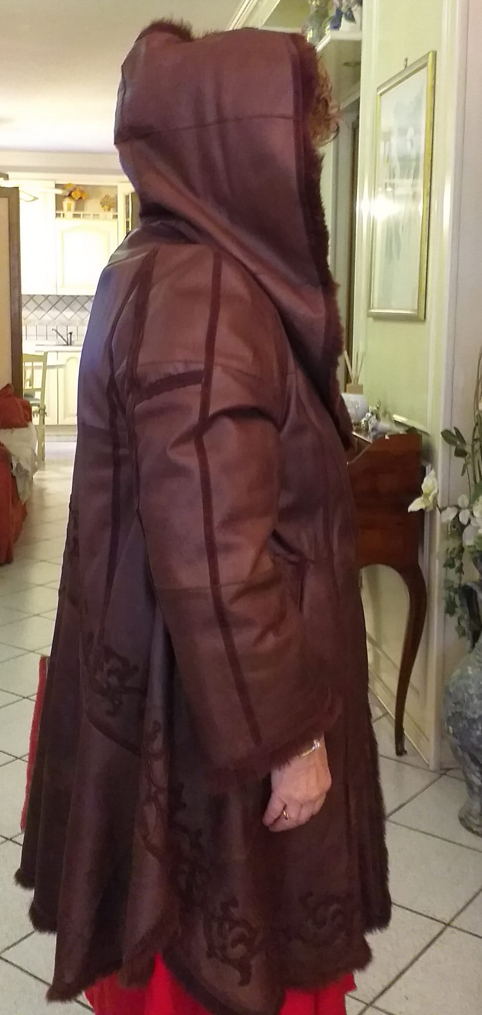 BEL GIACCONE in pelle con interno pelliccia di Lapin, con cappuccio, taglia 48/50 vendo