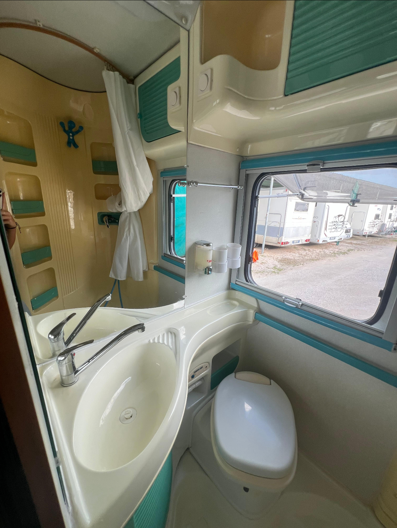 -Doppio serbatoio acque chiare: 110L + 200L -Serbatoio acque grigie 110L con scarico a rubinetto